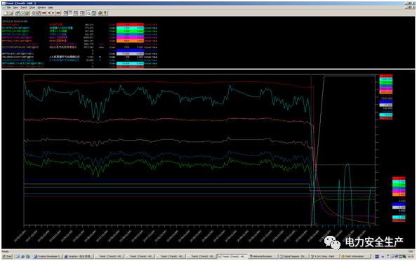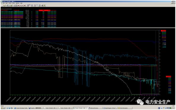2018年04月25日3号机组0:56开机并网运行,中、晚班中调给定计划负荷曲线平均581MW ,20时53分44秒跳机前机组负荷365MW,主汽压力17.21Mpa,主汽温560℃,再热汽温563℃,A、B、E、F四台磨煤机运行,分离器过热度4.2℃,为防止降负荷过程中,两台小机(即给水泵)最小流量阀同时自动联开,造成给水流量瞬间大幅降低,20时27分25秒运行人员预先将B小机(即B给水泵)最小流量阀切手动开至20%,另一台A小机最小流量阀保持自动状态。
