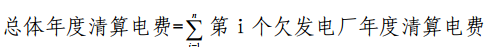第i个欠发电厂年度清算电费=第i个欠发电厂年度清算平衡电量×第i个欠发电厂年度所有市场化合同电量的加权平均电价