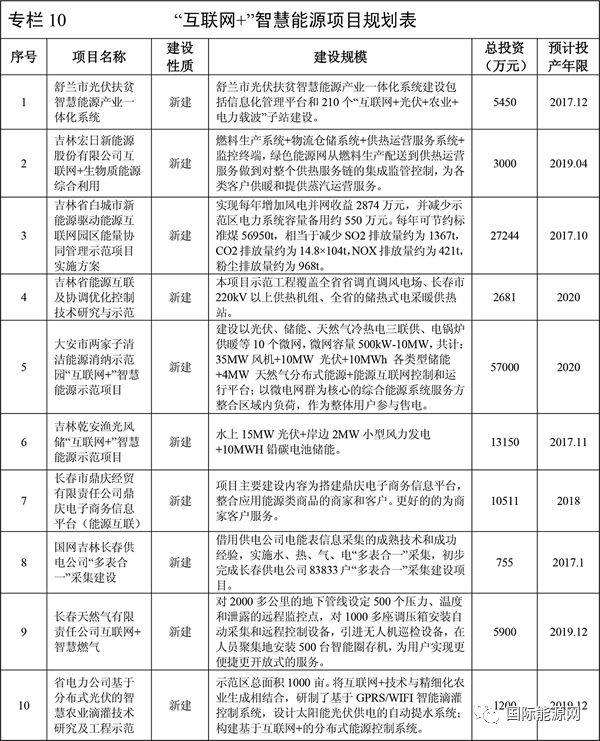 加快推进能源全领域、全环节智慧化发展,提高能源发展可持续能力,推进能源生产、输送、使用和储能等集成互补的能源互联网项目建设。重点在长春、吉林、白城等地区开展示范项目建设。
