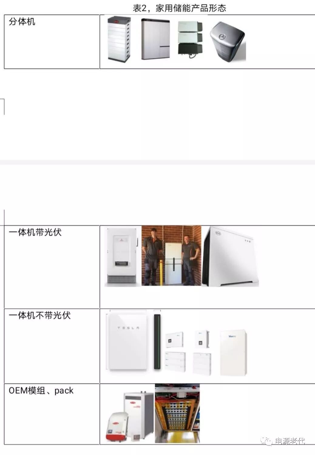再来看产品路线。具体来说大致有四种:分体机,一体机带光伏,一体机不带光伏,OEM提供模组或pack。市场上代表性的产品举例如下: