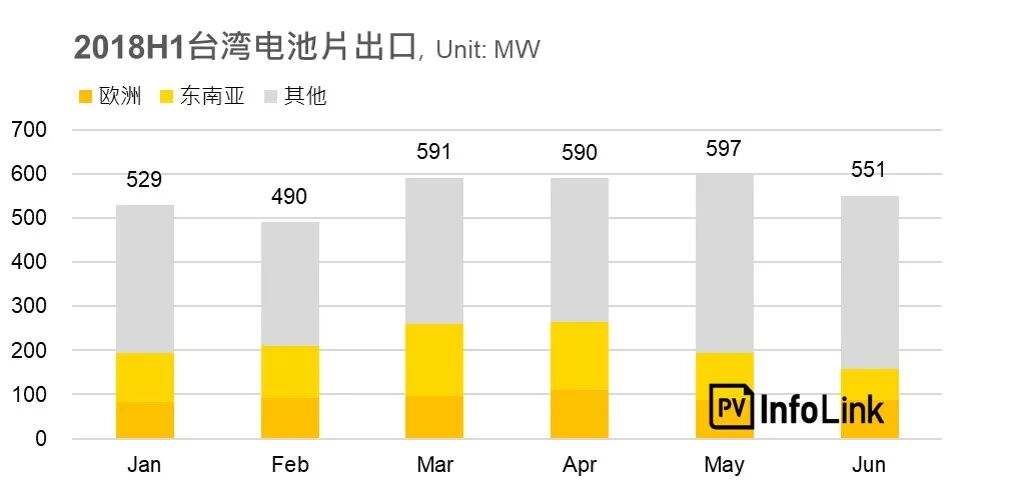 另外,经PV InfoLink统计,直接及间接输欧的需求约占据台湾三成的订单量。此番欧洲电池片需求的重新洗牌不仅驱使价格下降,也将冲击台湾电池片开工率必须再次调低。