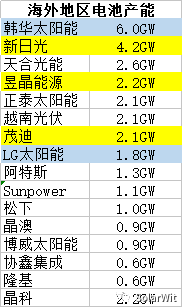 中国大陆地区的产能将会对全世界尤其是东南亚地区的产能造成严重的冲击,海外地区的那些成本偏高的产能损失最大,这里面台湾地区最为典型,新日光4.2GW、昱晶2.2GW、茂迪2.1GW,仅这三家就合计8.5GW。