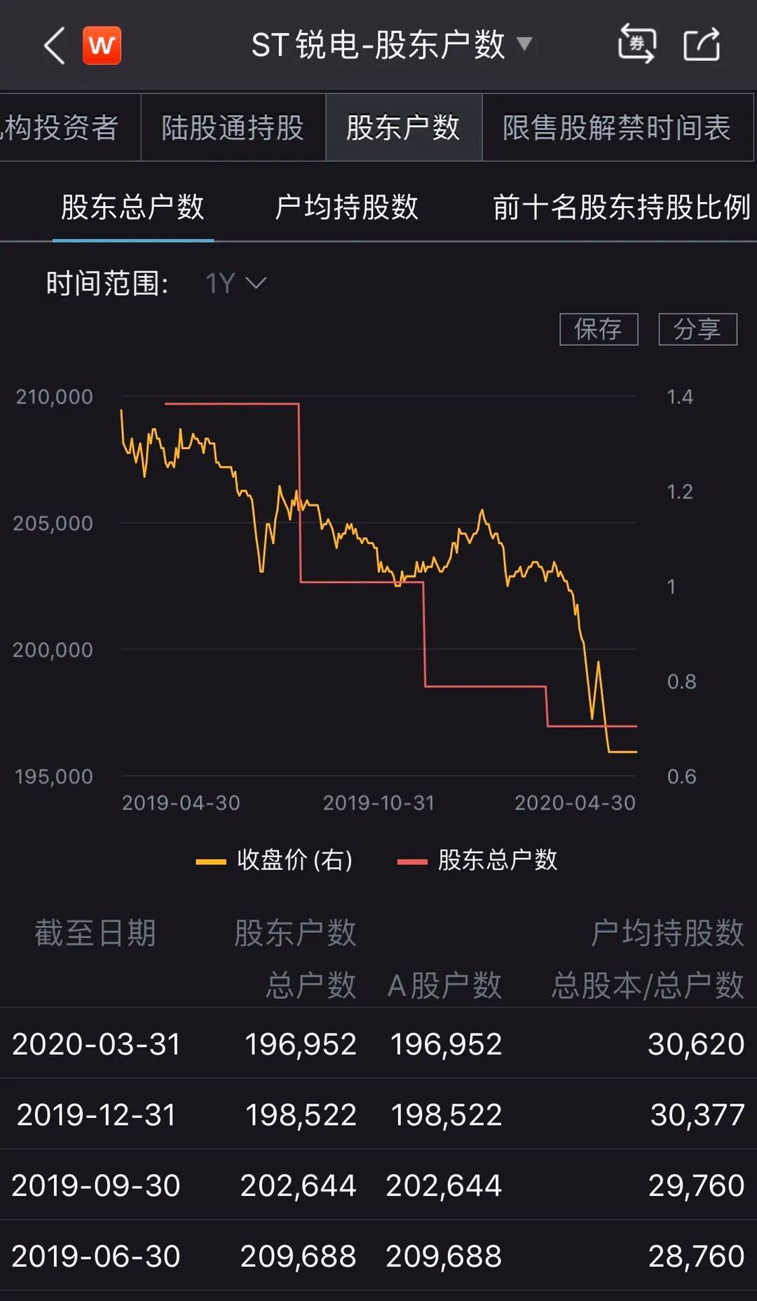 截至2020年一季度末,华锐风电仍有股东196952户,相比2019年三季度,已有5692户股东出逃;相比2019年末,已有1570户股东出逃。