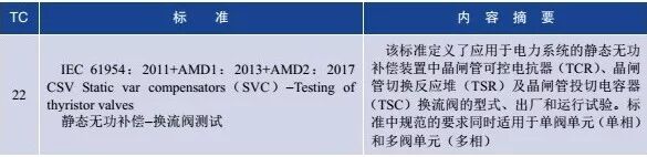 在发布的国际标准(IS)中,与电力相关的重点技术委员会发布的标准主要内容见表1和表2。
