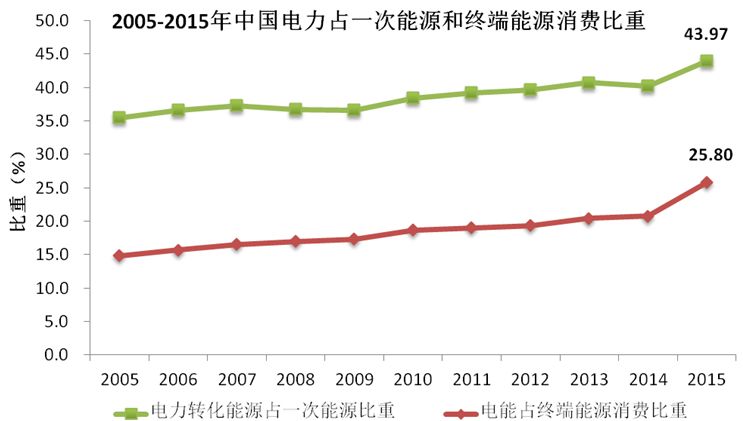 当前我国与发达国家电能在终端能源消费中的比重与我国持平,且我国还略高于英国等发达国家。这种现象使一些专家认为,我国电能占终端能源比重不会再提高。笔者认为,发达国家天然气在终端能源消费中的比重大约为25%左右,而我国在7%左右,我国计划在2020年才力争达到10%,2030年达到15%左右,制约天然气发展的主要因素是资源、价格以及低碳(相对于可再生能源)特性。要提高我国终端能源消费的清洁化,需要同步提高可再生能源发电比重及电能在终端能源消费中的比重。