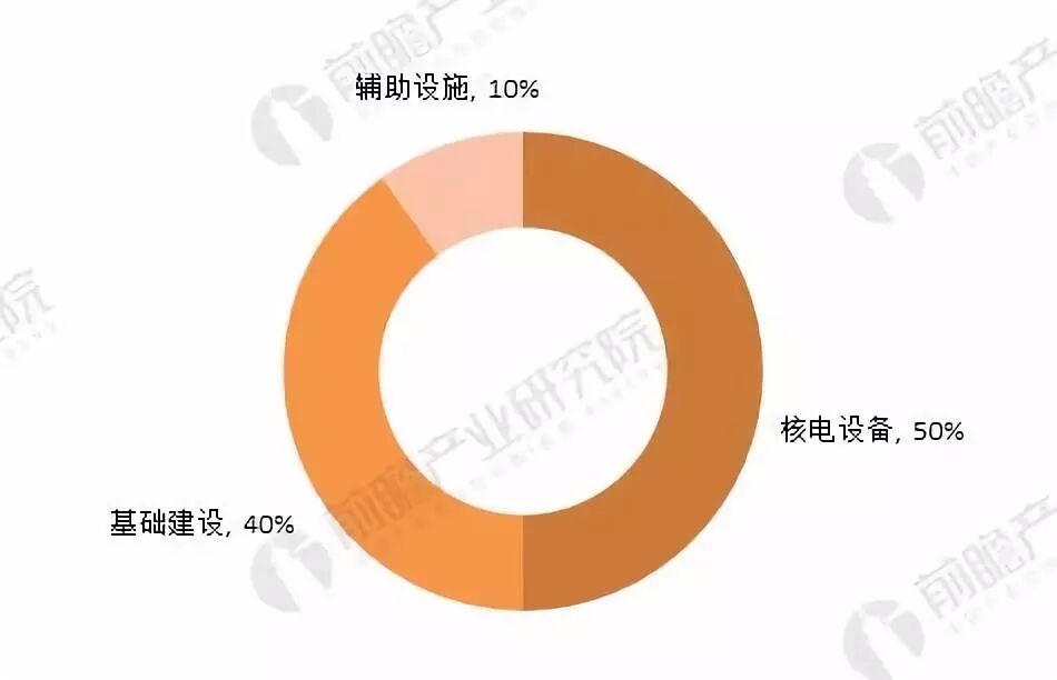 在整个核电产业链中,核电站建设环节的重要性不言而喻。以核电设备为例,核电设备主要分为核岛设备、常规岛设备和辅助设备系统(BOP)。在核电站投资中,一般核电设备投资占比约50%,高于基础建设、辅助设施投资。