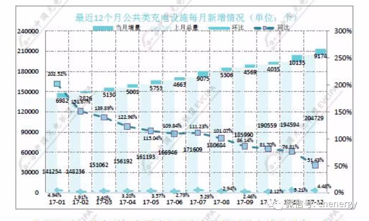 报告数据显示,截至2017年12月,联盟成员单位总计上报公共类充电桩21.4万个,其中交流充电桩8.6万个,直流充电桩6.1万个,交直流一体充电桩6.6万个。仅2017年12月份,比11月份新增公共类充电桩9174个,同比增长51.4%。2017年全年月均新增公共类充电桩约为6000个。中国汽车工业协会常务副会长、联盟理事长董扬表示,充电行业要成为可持续发展的行业,充电设施就要像汽车零件一样安全可靠、使用要和传统加油一样方便,结算要像手机支付一样方便。