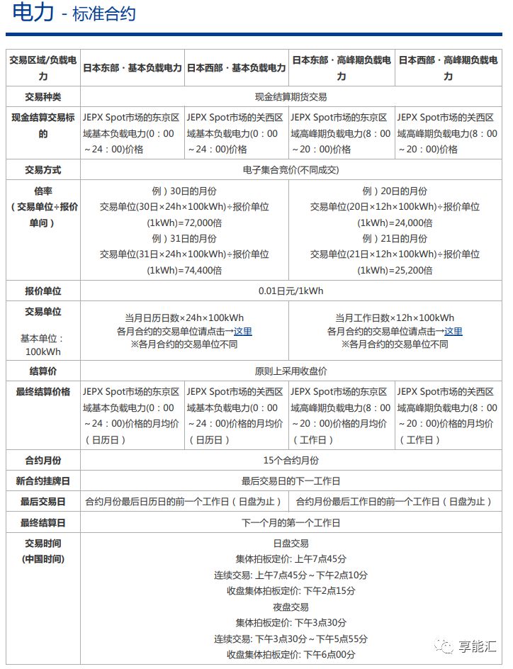 日本电力期货标准合约
