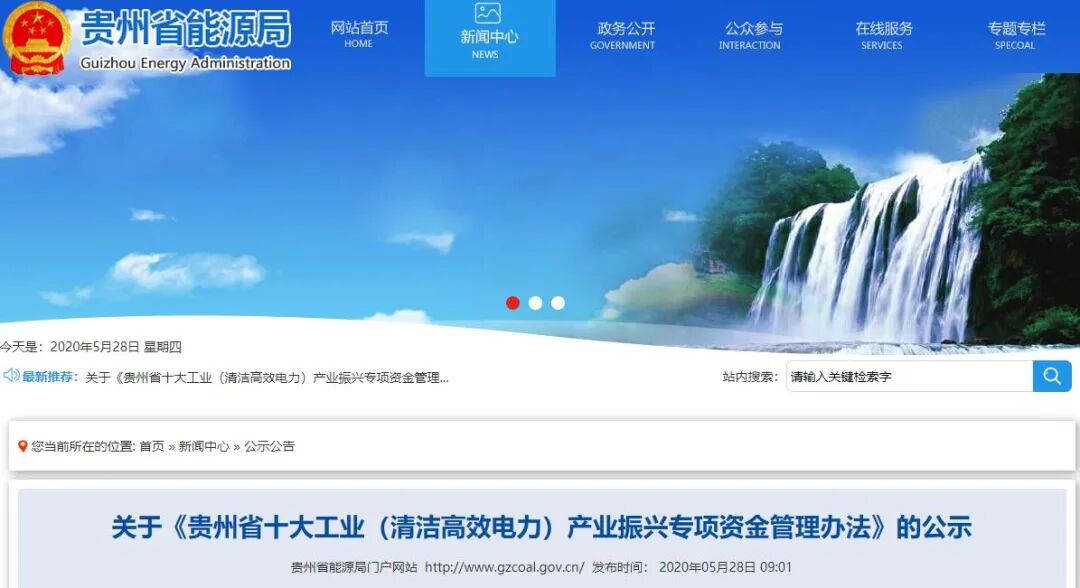 5月28日,《贵州省十大工业(清洁高效电力)产业振兴专项资金管理办法》向社会公示。