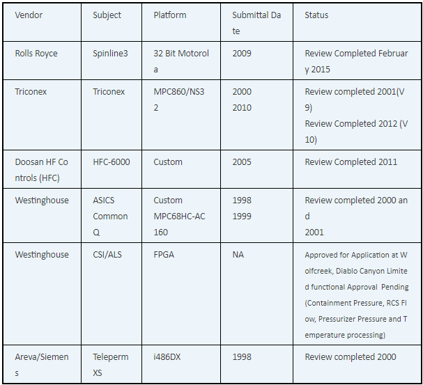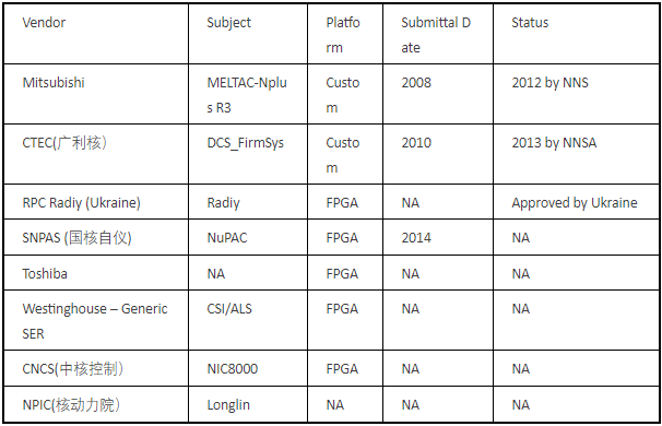 (2)目前美国NRC没有审批的系统