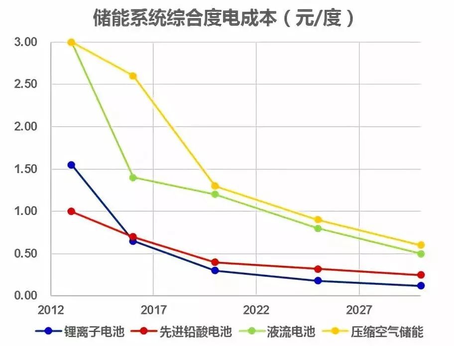 近年来,以多种类型储能技术产业化不断进步,其中锂离子电池储能技术经济性显著提升,2016年其综合度电成本接近0.65元/度,2020年有望达到0.30元/度,2030年接近0.12元/度,储能系统年利用小时数达200小时即可盈利。