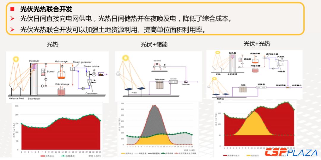 “根据德国经济能源署2015年以摩洛哥与沙特典型日负荷为例做的测算,不同储能时间下光伏+光热、光伏+储能、纯光热发电的度电成本,两个国家光伏+光热联合发电度电成本都是最低的,说明光伏+光热联合发电这种方式比较经济,也有市场的空间。”2018年6月20~22日,在北京召开的第五届中国国际光热电站大会暨CSPPLAZA年会2018(CPC2018)上,全球能源互联网+发展合作组织经济技术研究院技术处处长申洪对构建全球能源互联网,促进光热大规模发展作了专题介绍。