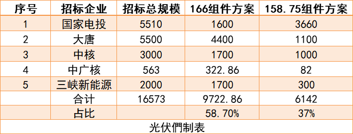 另一方面,除了上述因生产成本导致的供货问题之外,高效产能供应能力也是下半年抢装的一大隐忧。光伏們统计了五家电力央企的组件集采情况,其中166组件方案占比将近60%,加上后续的华电、华能等招标,166的占比预计将超过60%。