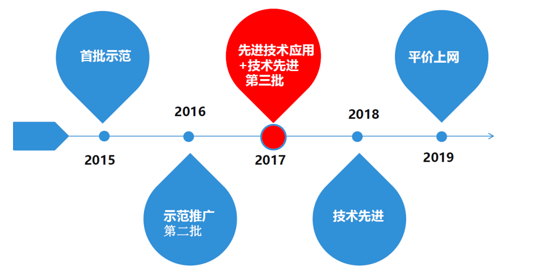 自2015年领跑项目首批示范开始,至2016年进行示范推广,而至2017年从第三批领跑者优选结果来分析,技术领跑基地的组件下降空间巨大,因此,综合前批次领跑者实施成果,第四批领跑者采用技术路线竞争电价模式可能性较大。我国现状土地资源昂贵且稀缺,而光伏对于土地复合利用或整治优势明显,且在较多项目中已有应用也取得了一定成就,如被列入领跑者计划,对于光伏市场的延伸也起到促进作用。由于土地资源稀缺,而分布式市场却很火爆,因此,屋顶分布式型式的领跑者也有可能被列入计划