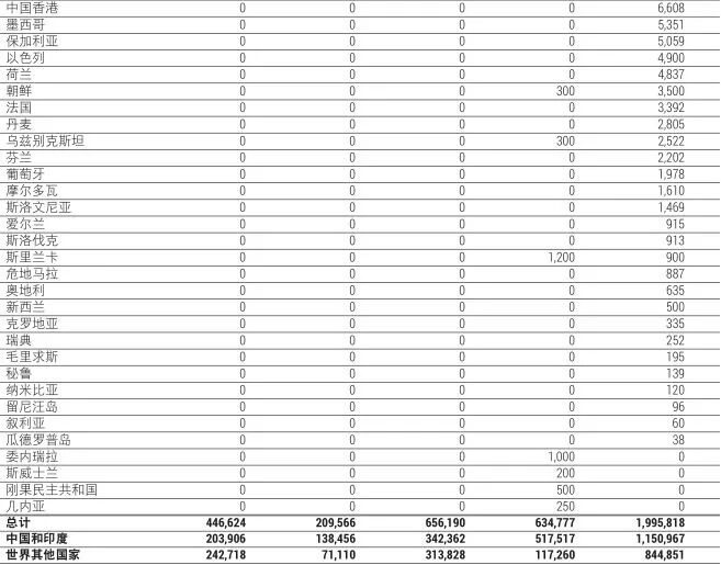 如表3所示,燃煤电厂仍然在60个国家内积极扩张。在这60个国家之中,15个国家的燃煤电厂项目占据了90%的新增装机容量。