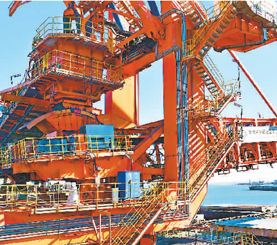 为保燃煤发电、民生用电用暖,国家能源集团黄骅港务公司近日加强组织煤炭运输,自10月1日至11月11日,黄骅港煤炭下水量2217万吨。图为黄骅港煤炭港区,装船机正在作业。苑立伟摄(人民视觉)