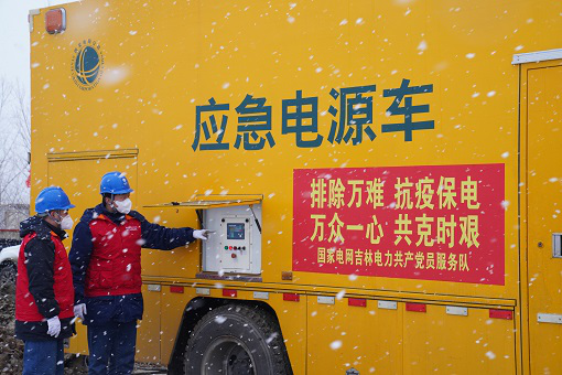国网吉林电力共产党员服务队队员运维应急电源车。