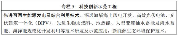 加快发展风电、太阳能发电。全面推进风电和太阳能发电大规模开发和高质量发展,优先就地就近开发利用,加快负荷中心及周边地区分散式风电和分布式光伏建设,推广应用低风速风电技术。在风能和太阳能资源禀赋较好、建设条件优越、具备持续整装开发条件、符合区域生态环境保护等要求的地区,有序推进风电和光伏发电集中式开发,加快推进以沙漠、戈壁、荒漠地区为重点的大型风电光伏基地项目建设,积极推进黄河上游、新疆、冀北等多能互补清洁能源基地建设。积极推动工业园区、经济开发区等屋顶光伏开发利用,推广光伏发电与建筑一体化应用。开展风电、光伏发电制氢示范。鼓励建设海上风电基地,推进海上风电向深水远岸区域布局。积极发展太阳能热发电。