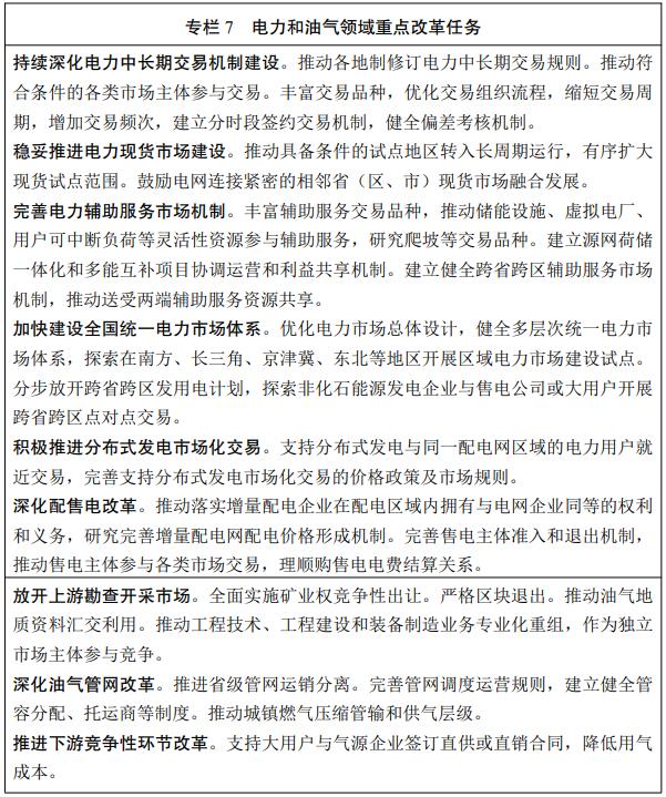 深化电力、油气体制机制改革,持续深化能源领域“放管服”改革,加强事中事后监管,加快现代能源市场建设,完善能源法律法规和政策,更多依靠市场机制促进节能减排降碳,提升能源服务水平。