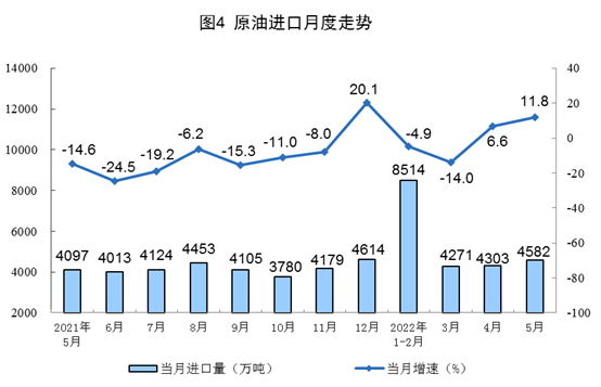 进口数据来源于海关总署,其中2022年5月份数据为快讯数据。